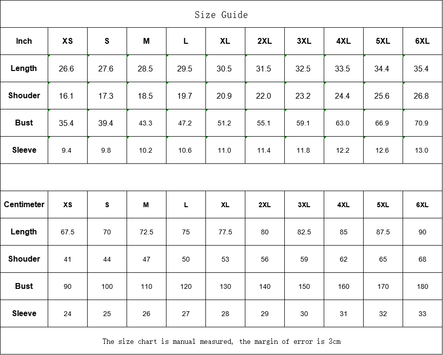 | Centimeter | XS | S | M | L | XL | 2XL | 3XL | 4XL | 5XL | 6XL |